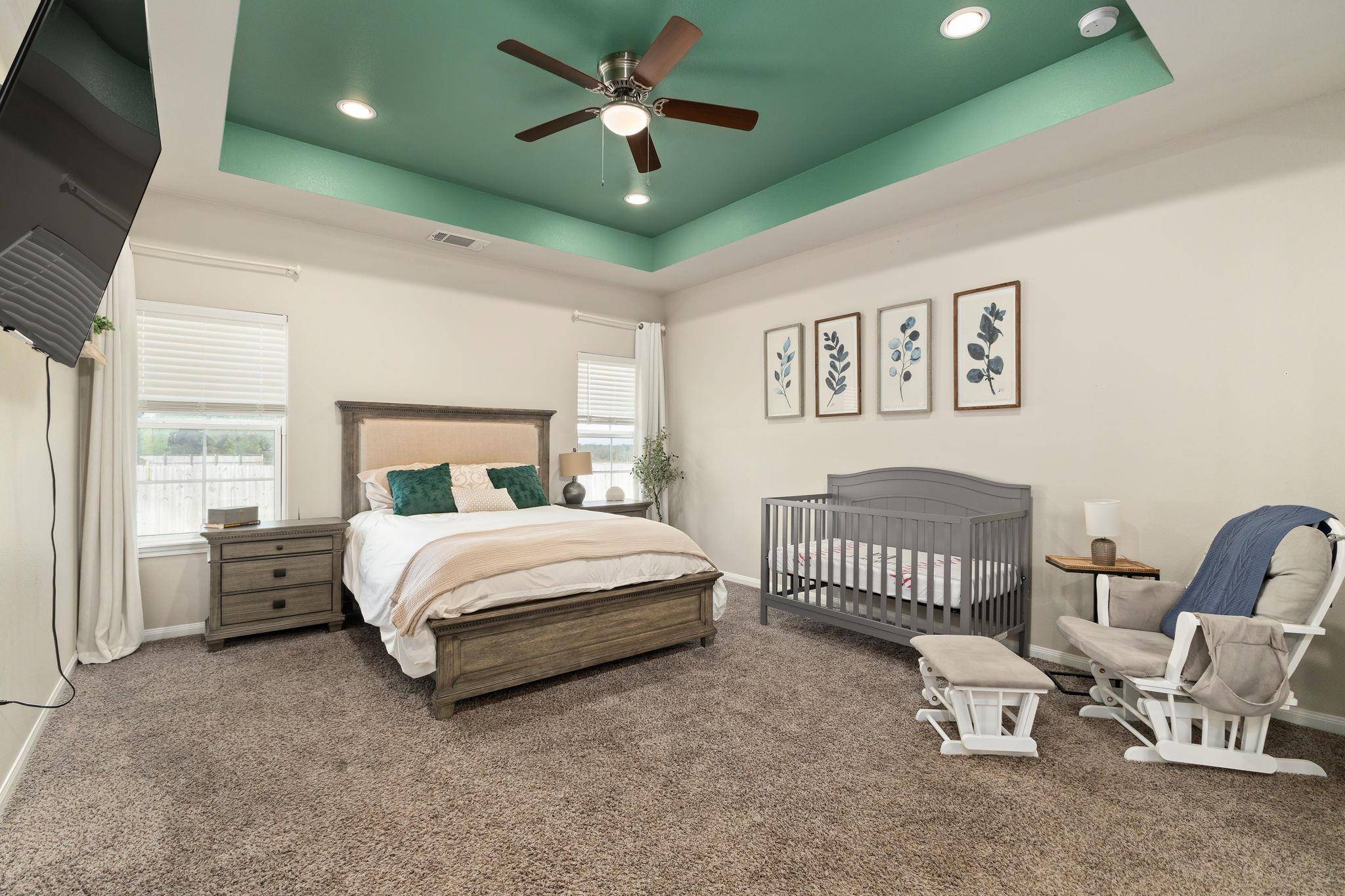 The primary suite is a serene retreat, complete with double sinks and a large walk-in closet, blending comfort with everyday luxury. Two additional bedrooms provide exceptional versatility for family, guests, or workspace needs.